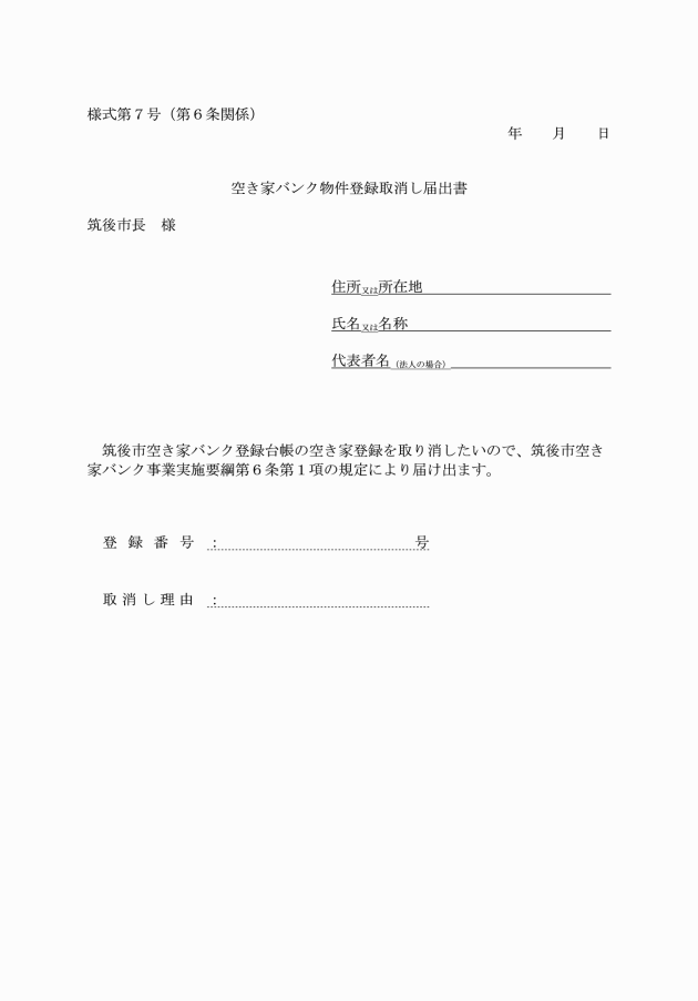 第7条 市長は、必要に応じて、登録台帳に登録された空き家等に係る情報を公開し、空き家バンクの利用を希望する者(以下「利用希望者」という。)に提供するものとする。
